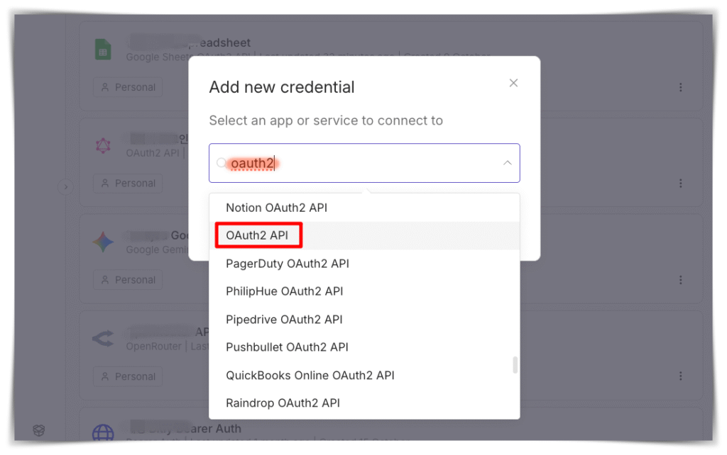 이제 네이버 개발자 센터에서 클라이언트 앱 등록도 마치고, Authorize URL과 Token URL의 역할도 이해했으니, n8n에서 네이버 로그인 API Credential을 설정하는 방법을 알아볼 차례예요. n8n의 Credentials 섹션으로 이동하여 새로운 OAuth2 Credential을 추가하면 된답니다.