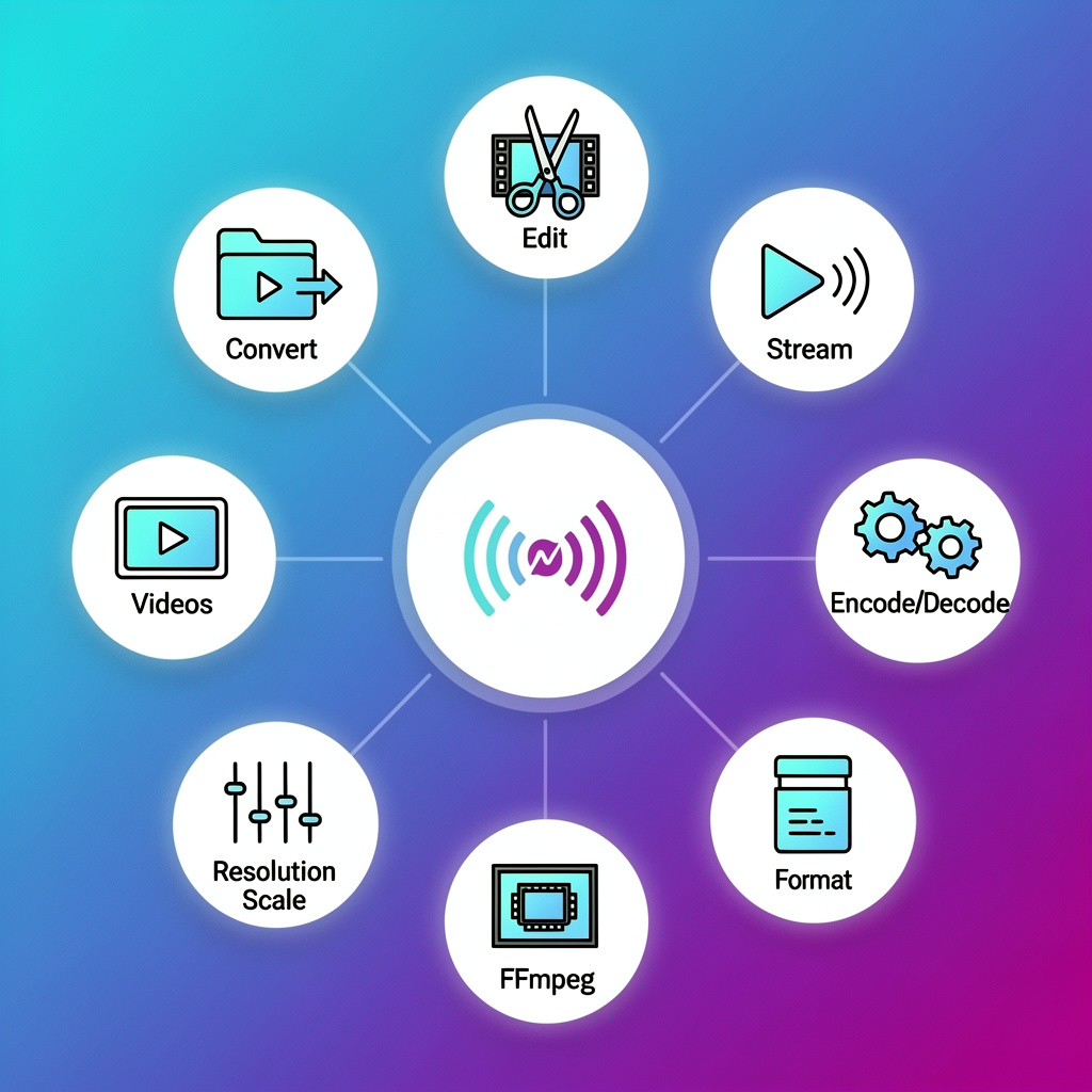 FFmpeg은 동영상, 오디오 파일을 다루는 데 필요한 거의 모든 기능을 제공하는 오픈소스 프로젝트예요. 미디어 파일의 포맷을 바꾸거나, 특정 부분을 자르고 합치고, 심지어 스트리밍까지 가능하게 해주는 마법 같은 도구라고 할 수 있죠. 코덱(Codec)이라는 개념을 통해 다양한 종류의 미디어 파일을 읽고 쓸 수 있어서, 사실상 현존하는 대부분의 미디어 포맷을 처리할 수 있답니다.
