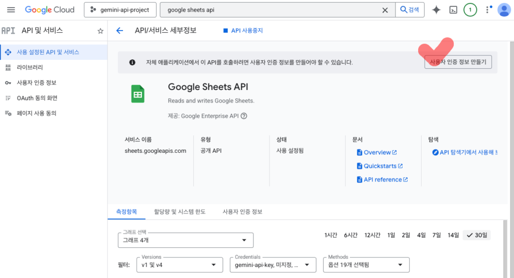 Google Sheets API 활성화 및 설정하기