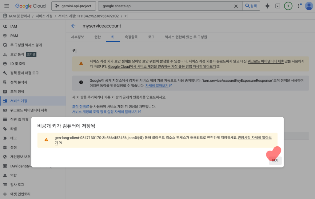 JSON 키 다운로드와 보안 관리 주의사항