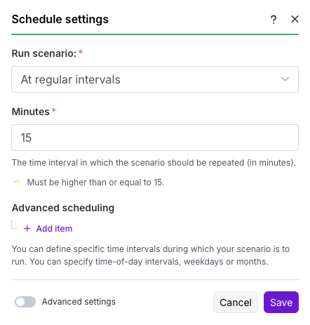 Advanced scheduling에서 매우 상세한 시간 설정이 가능합니다.