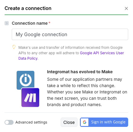 이런 과정들이 매우 당연하고 편리해보이지만, 이를 위해서 make.com 에서는 각각의 어플리케이션을 만들고, 구글에 등록한거에요.